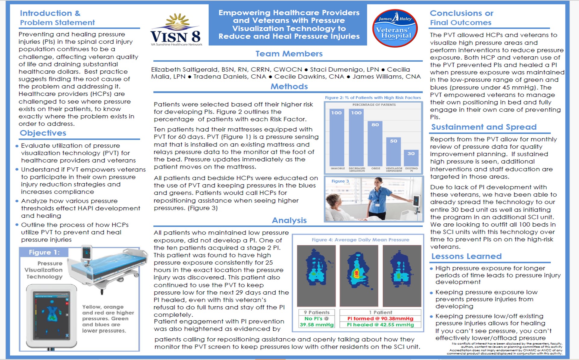 A clinical poster from the James A. Haley Veterans’ Hospital (VISN 8) showed that with pressure visualization technology, 90% of high-risk spinal cord injury patients avoided new pressure injuries, and existing Stage 2 injuries healed when pressure was reduced. Read Full Article